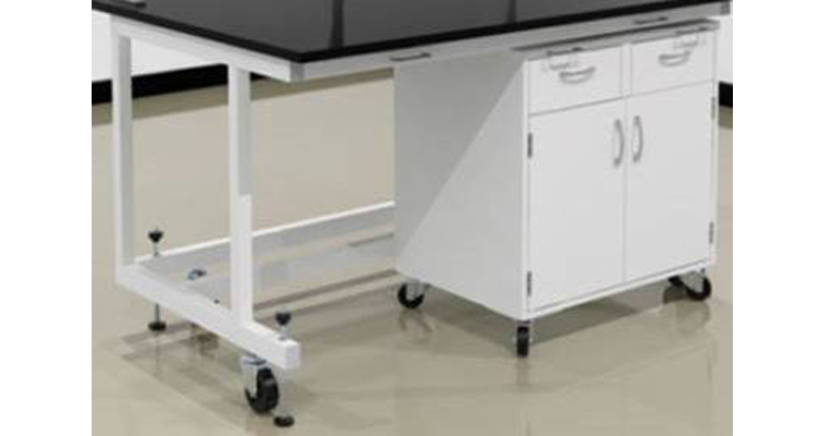 Under bench storage cabinets are easily positioned at any point horiozontally along the table frame and are easily remove or repositioned for storage or knee space area. Rear Portion of leg space will be covered with easily removable type end closure panel for easy maintainance purpose.